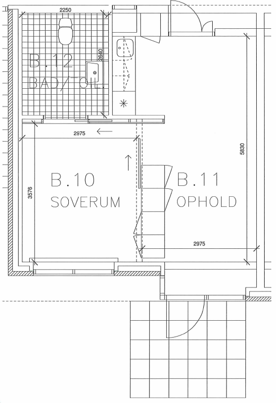 - Type 2 er etrumsboliger på 75 m2 (inkl. fællesarealer), som indeholder en opholdsstue med soveafdeling, et tekøkken og et badeværelse.